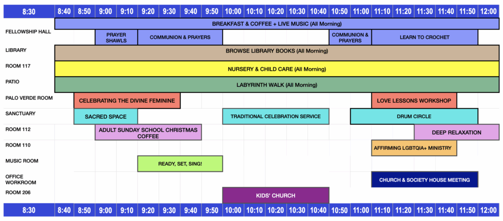 On 2nd Sundays from 8:50 – 9:30 a.m. in the Palo Verde room, we celebrate the Divine Feminine. On December 14, we will look at symbols of ancient spirituality that embraced the rhythm, the creative cycle of the Divine Feminine.